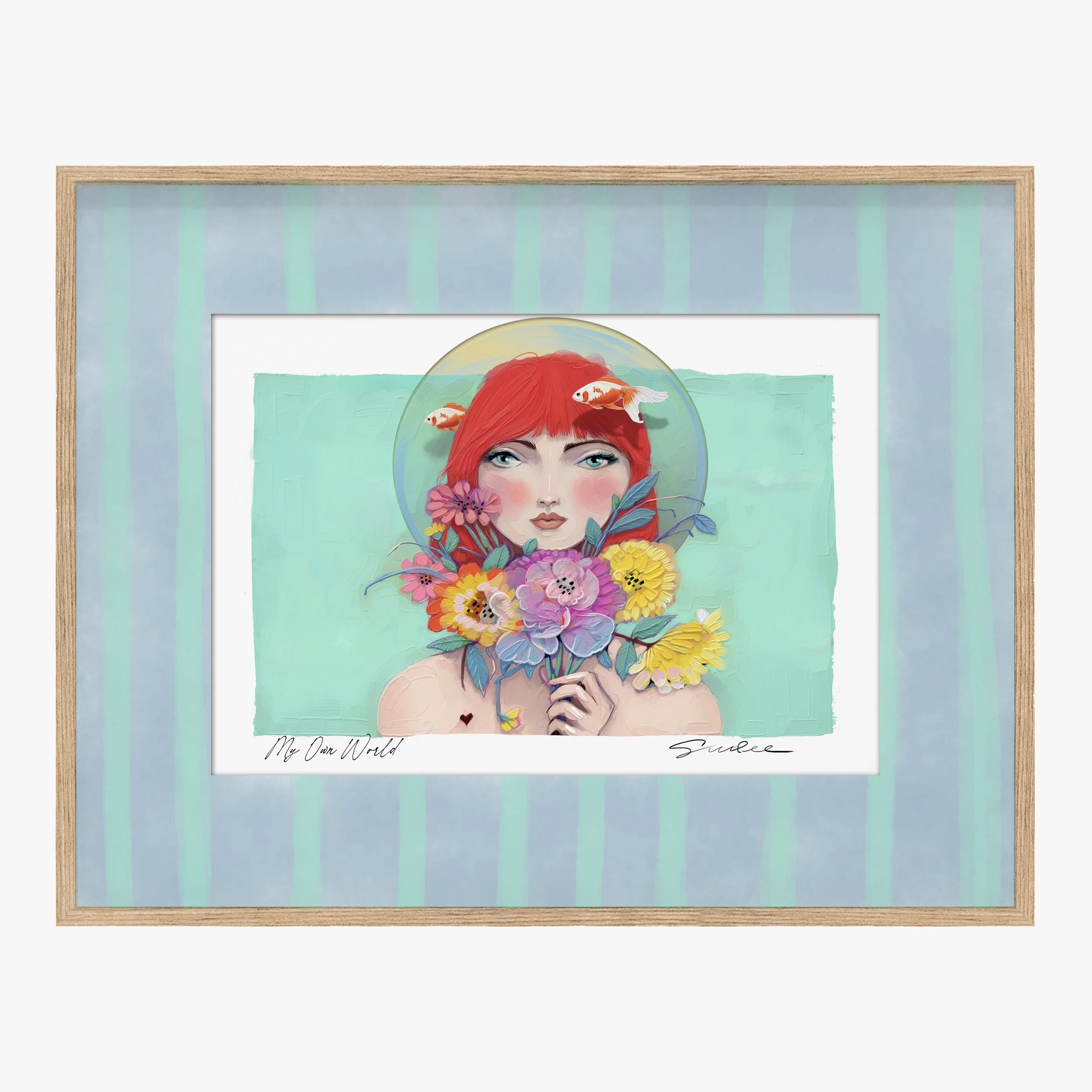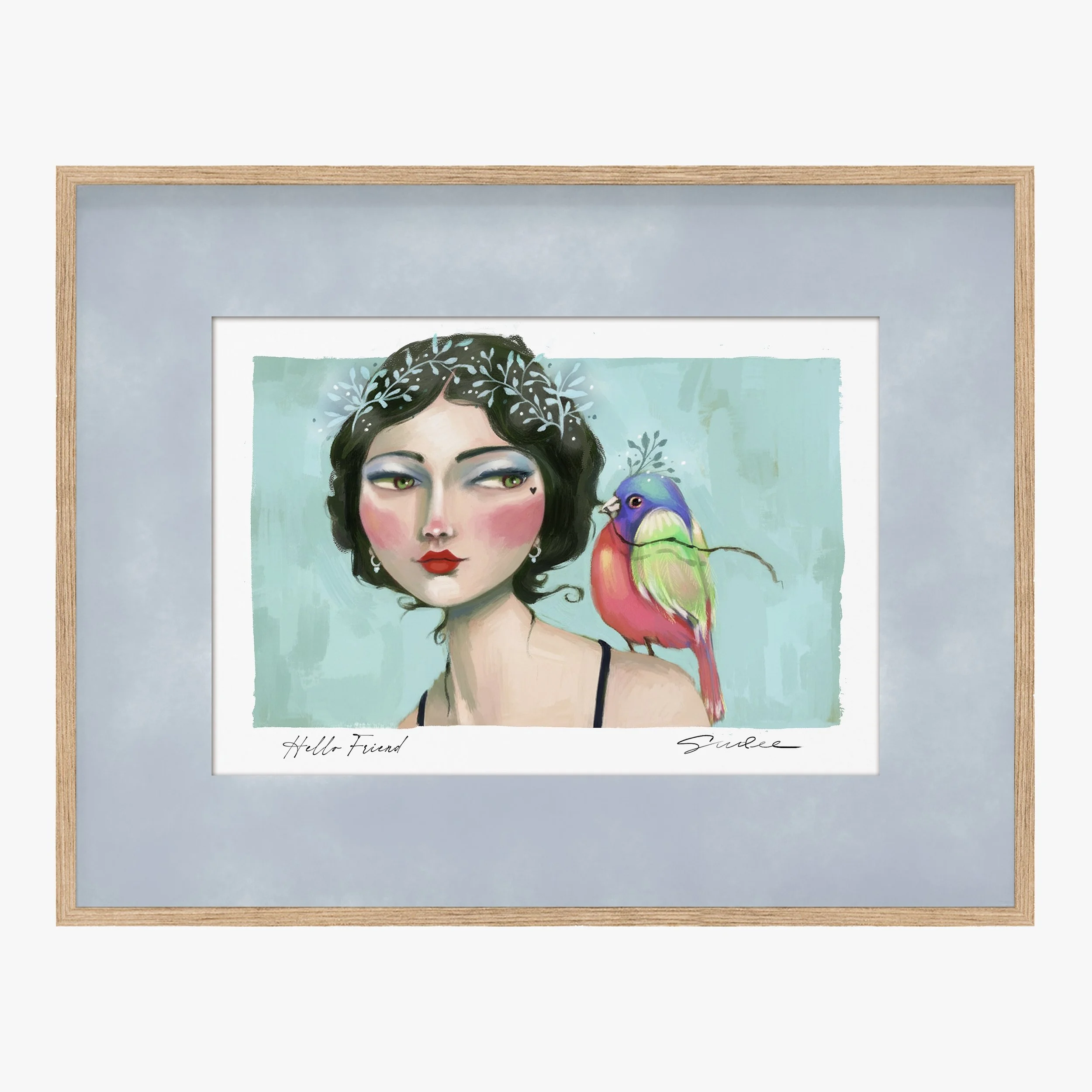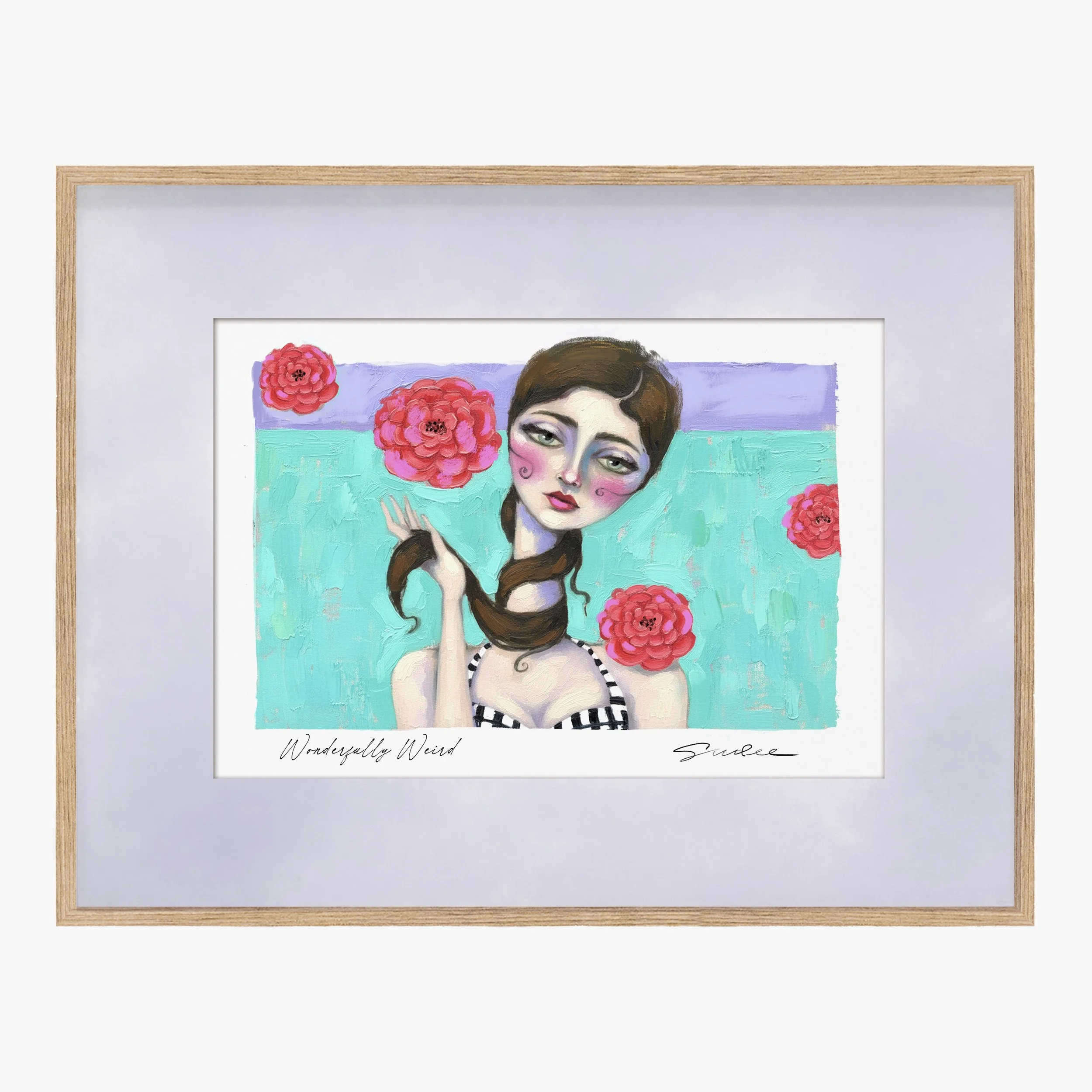 Our small prints come matted and framed in a trendy natural wood frame. Each mat is hand-painted in a soft chalk color that enhances the print. The artwork is titled and hand-signed.